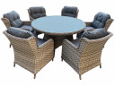 Элегантная деталь комплекта - стеклянная столешница. Соберите в этом уютном уголке приятную компанию и наслаждайтесь общением.